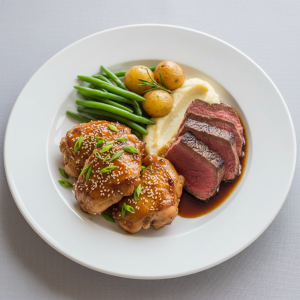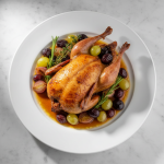 - J 13h : Mise en plateau chaud ≥+63°C (bain-marie si délai). Napper sauce réduite. Parures (peau, os) : récupération fond brun ou bouillon demain.