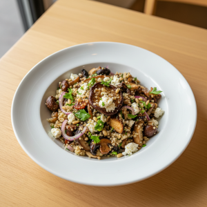 Salade de champignons rôtis, quinoa et féta : frais, gourmand et sain