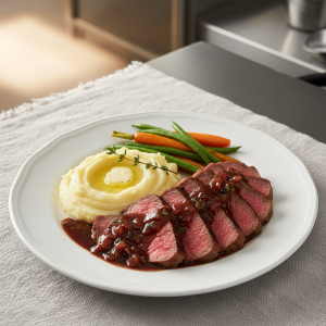 Pas de secret : acheter bon, cuire juste, reposer 10min. Cette recette plaît à tous les âges et mérite une belle table. À accompagner de légumes rôtis (carotte/courge) ou purée maison pour le bonheur assuré.