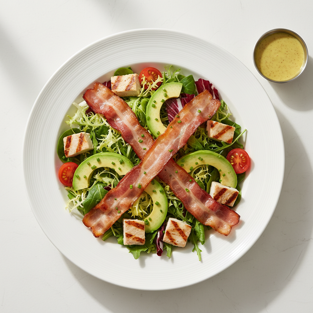 Une salade gourmande et équilibrée, facile à préparer en famille avec des ingrédients frais du marché. Poulet tendre, avocat fondant, bacon croustillant : le trio gagnant pour un repas complet qui plaît à tous les âges.