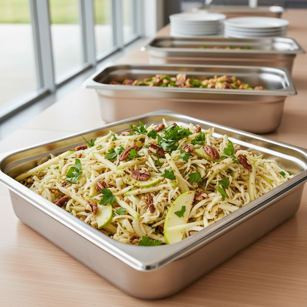 Une salade simple et savoureuse qui célèbre les produits frais du marché automnal. Aucun secret : du céleri-rave râpé, des pommes croquantes, des noix gourmandes et une vinaigrette à la moutarde. Prête en 20 min, parfaite en entrée légère ou accompagnement d’un plat chaud.