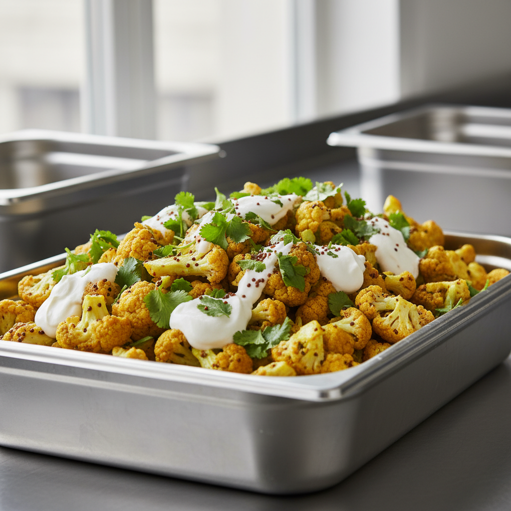 - 5. FINITION : Versez la sauce sur le chou-fleur juste avant de servir. Parsemez de coriandre fraîche ciselée. Croquant + onctueux = parfait !