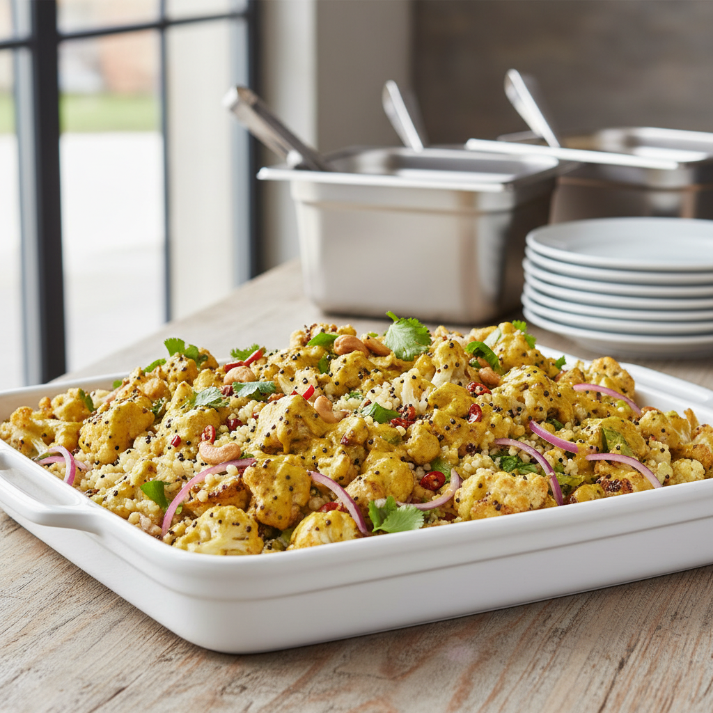 Voici la recette coup de cœur du chef : simple, généreuse, 100% naturelle. Le chou-fleur rôti, c’est le secret pour régaler même les enfants qui rechignent habituellement face aux légumes. La vinaigrette curry-moutarde apporte une touche savoureuse et apaisante, parfaite pour l’automne-hiver.