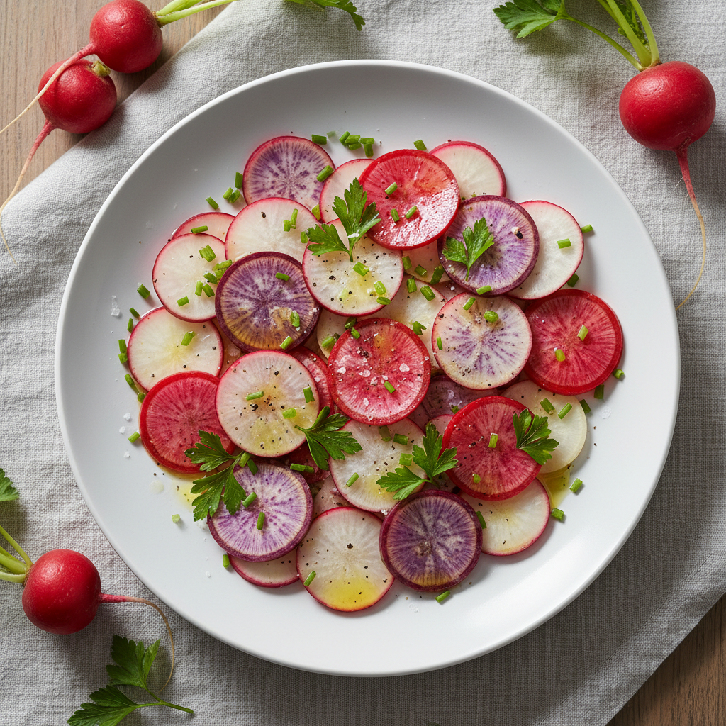 Les radis sont l’ami du cuisinier amateur : zéro cuisson, zéro risque, 100% saveur. Multicolores, ils égaient l’assiette et offrent des notes poivrées subtiles. Une vinaigrette simple à l’ancienne suffit pour transformer ces légumes croquants en salade mémorable.