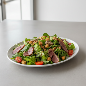 La salade landaise, c’est l’équilibre parfait : légume frais, protéine généreuse, bon gras des noix. À servir en entrée copieuse ou en assiette principale. Osez chercher vos ingrédients auprès de producteurs locaux : gésiers fermiers, magret artisanal, salade du maraîcher. Vous verrez la différence !