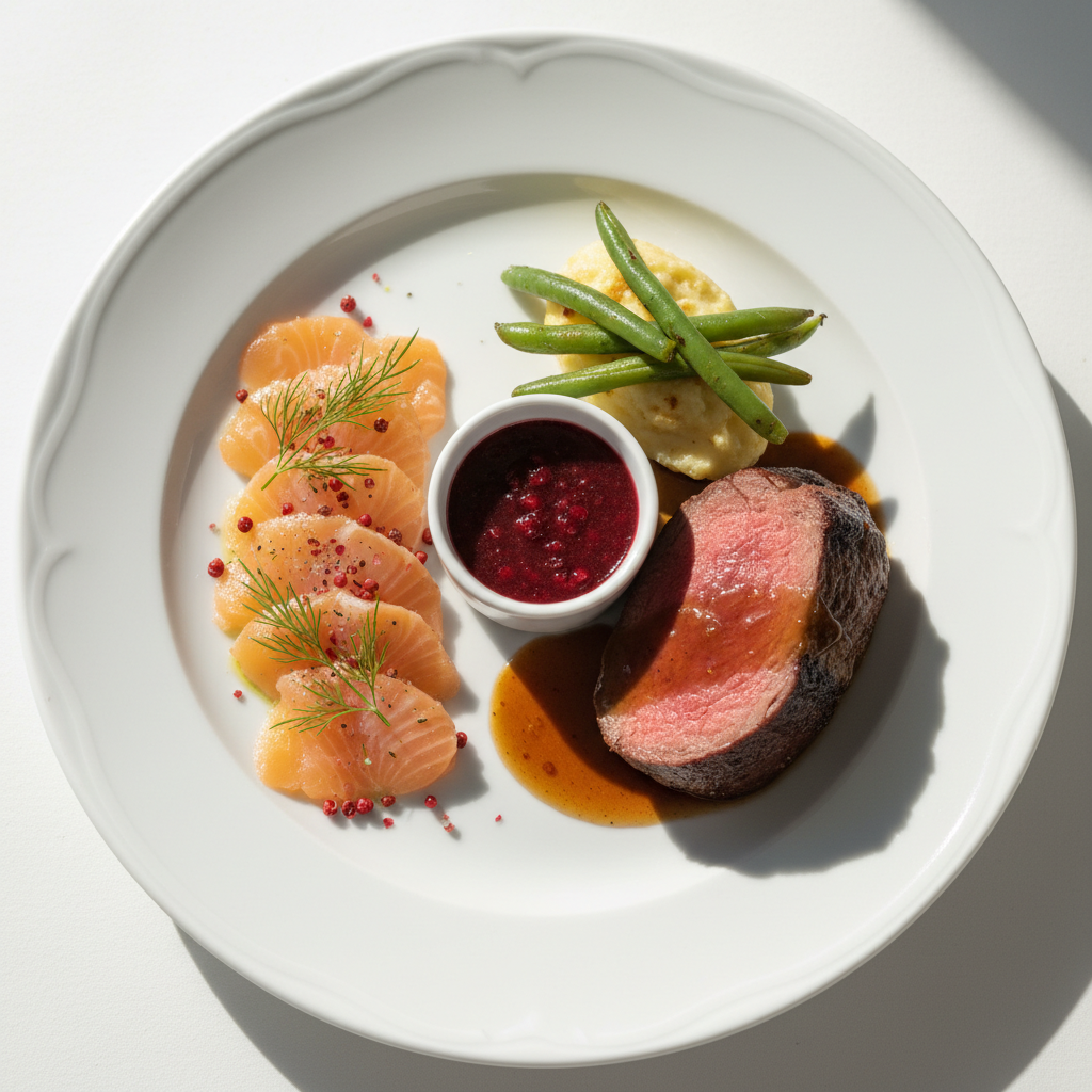 - Pressez jus citron vert frais (2 citrons verts pour 4 portions). Écrasez légèrement 15g baies roses. Cislez aneth frais (1 botte). Mélangez : jus citron + baies roses + aneth + 1 pincée sel + 8cl huile olive bio.