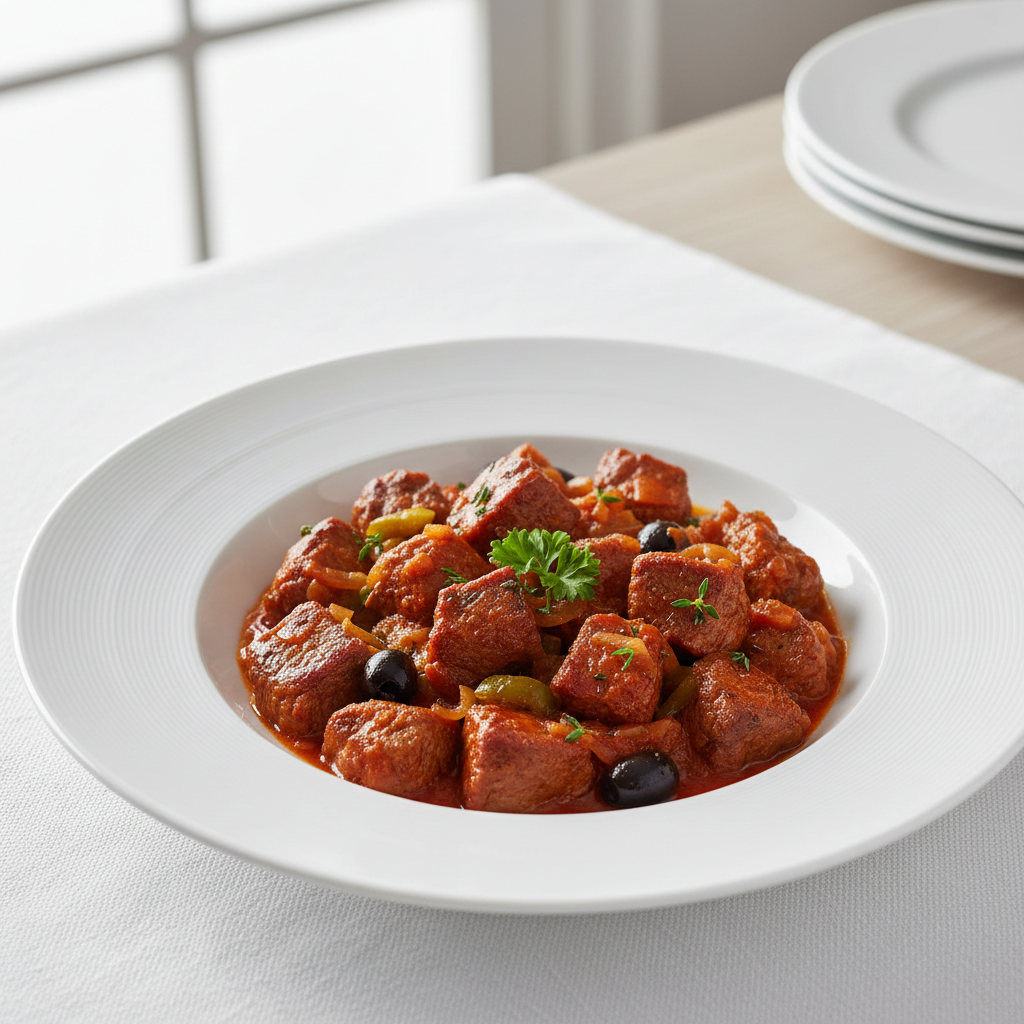 - Finition : remettez la viande, ajoutez olives et anchois émiettés. Couvrez et laissez mijoter 40-45 min à feu moyen-doux. La viande doit être tendre.