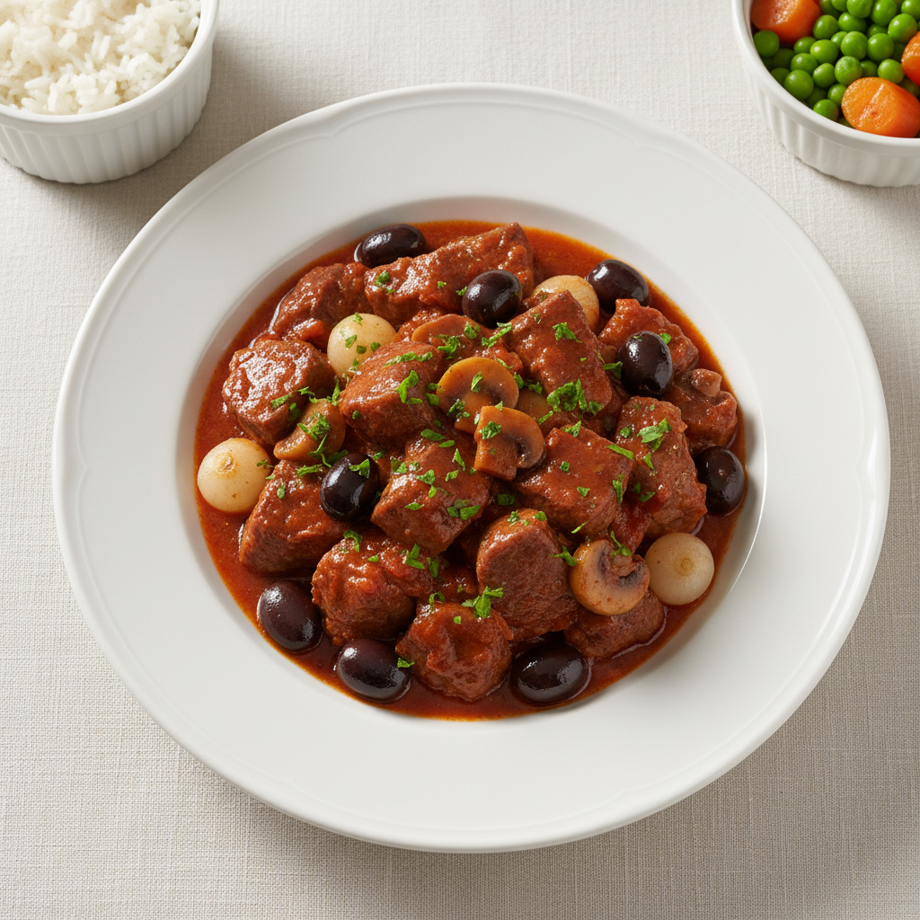 Un plat complet, nourrissant, fait maison sans artifice. Servez chaud avec du riz ou des pâtes fraîches, un verre de vin blanc sec. À préparer le week-end, parfait pour nourrir les siens avec des produits vrais et du temps passé en cuisine. Bon marché, belle assiette.