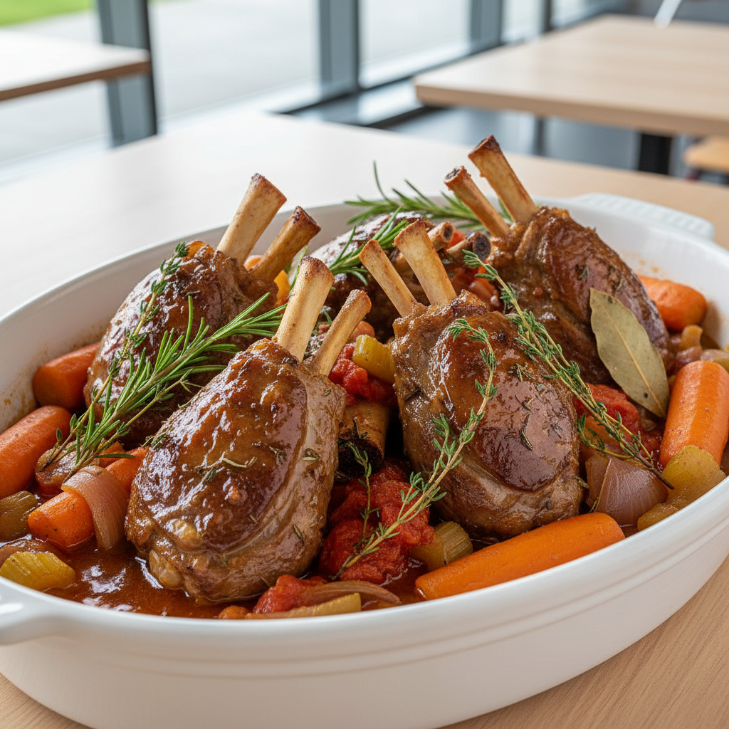 Voici une recette classique de grand-mère revisitée : la souris d’agneau braisée est la viande tendre qu’on adore en famille. Moins connue que l’épaule, la souris devient extraordinaire avec 3 heures de cuisson douce — fondante, riche en saveur, réconfortante. Légumes caramélisés dans le jus, thym frais : c’est un dimanche à table.