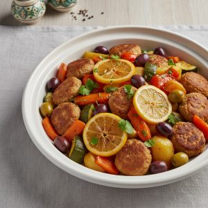 Tajine de boulettes maison aux légumes frais et citrons confits