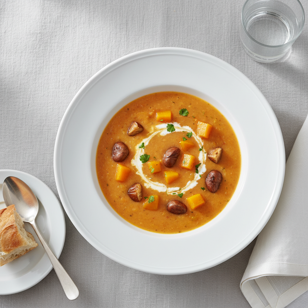 Velouté maison lentilles corail, potiron et châtaignes : la recette d'automne réconfortante