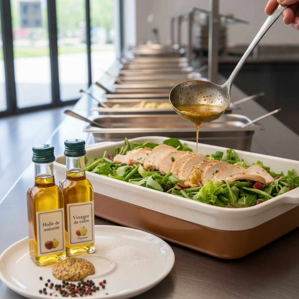 Depuis 20 ans en cuisine de collège, je prépare cette vinaigrette à la main pour 600 couverts quotidiens. C’est un classique incontournable, riche en saveur de noisette, 100% bio. Voici comment la réussir chez vous.