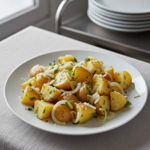EGAlim : Conforme EGAlim : 100% produits frais bruts (0% ultra-transformé). Privilégier pommes de terre bio label AB ou ECOCERT (circuits courts locaux : producteurs régionaux, AMAP). Huile d'olive extra-vierge bio. Alternative vegan : remplacer huile d'olive classique par huile de tournesol bio local si nécessaire. Estimation : 80-90% bio possible en sourçage local.