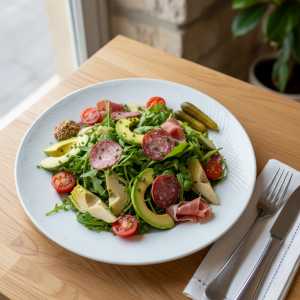 Salade estivale 100% brut et circuit court : fonds d'artichauts cuits à la vapeur douce, avocats à juste maturité, tomates cerises bio. Produit phare EGAlim (70% bio), portion généreuse, coût maîtrisé. Préparation chaîne froid optimisée, <2h avant service pour éviter oxydation.