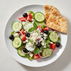 Déclinaisons : Texture modifiée : concombres râpés fins pour enfants <4 ans, sauce lissée. Alternative végétarienne : identique (déjà végétarien). Alternative végan : remplacer yaourt grec par yaourt coco bio ou crème de cajou mixée à l'eau. Variante sans allergène lactose : yaourt à base de boisson végétale certifiée bio. Déclinaison estivale : ajouter tomates cerises bio, olives noires Kalamata bio (réduire sel à 3g/kg).